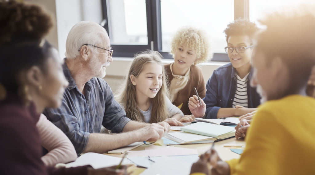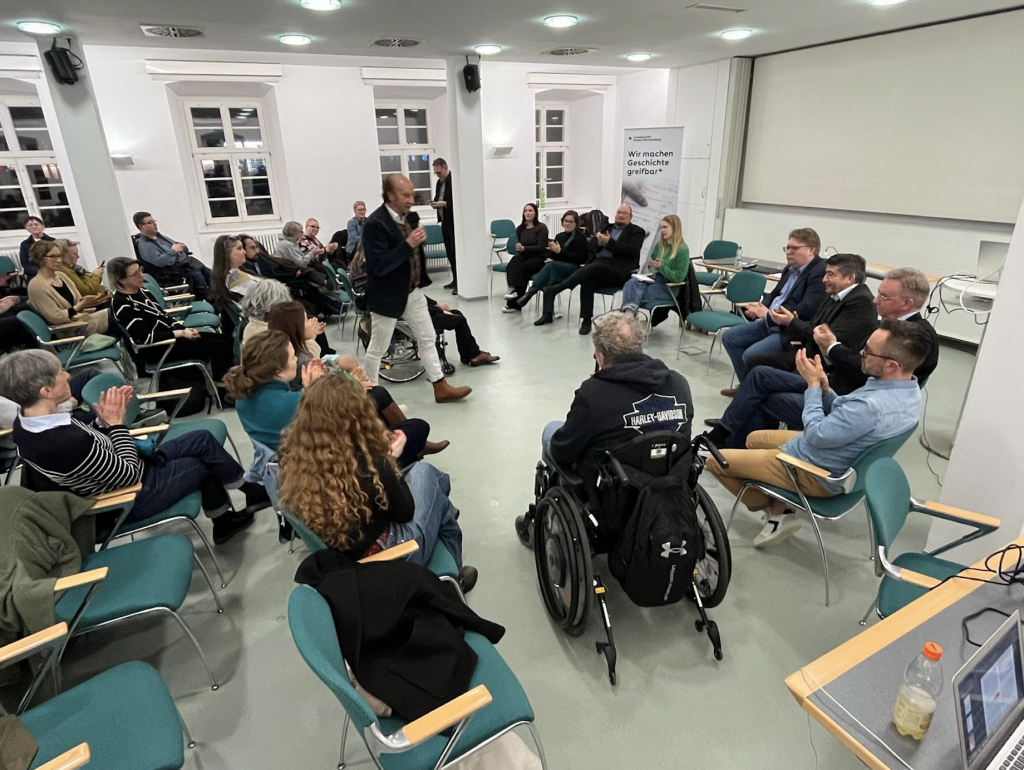 Angeregte Diskussion über Wirtschaft und Inklusion.