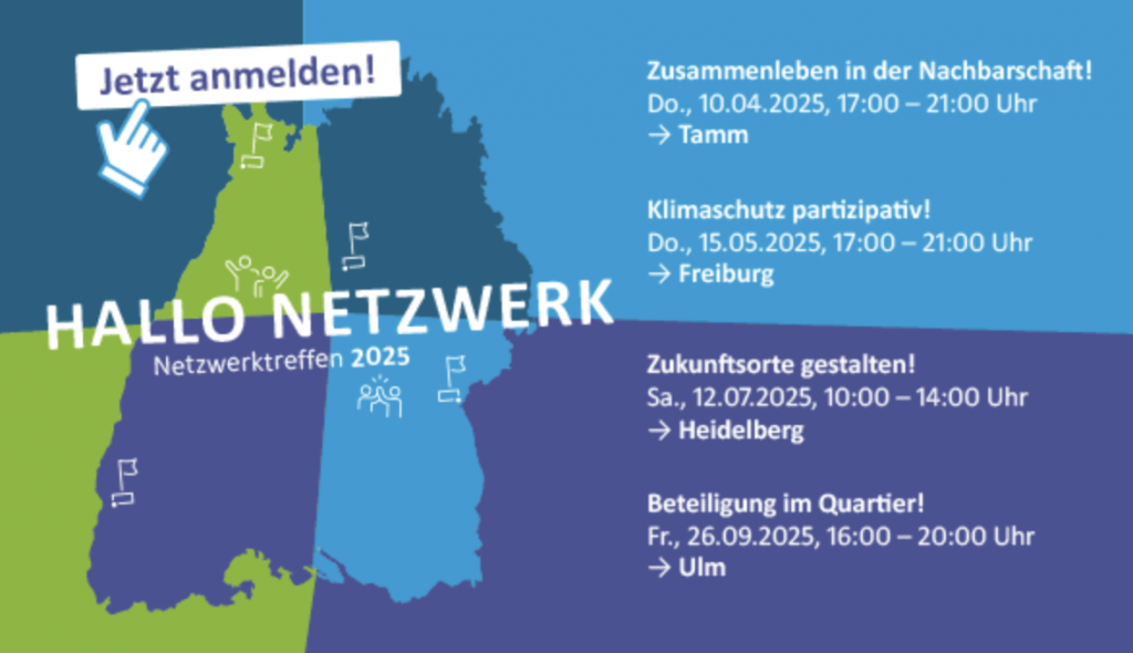 Wer kommt noch spontan mit, am kommenden Samstag 10-14:00h zum Netzwerktreffen der Allianz für Beteiligung. Weitere Infos und Anmeldung finden Sie hier: